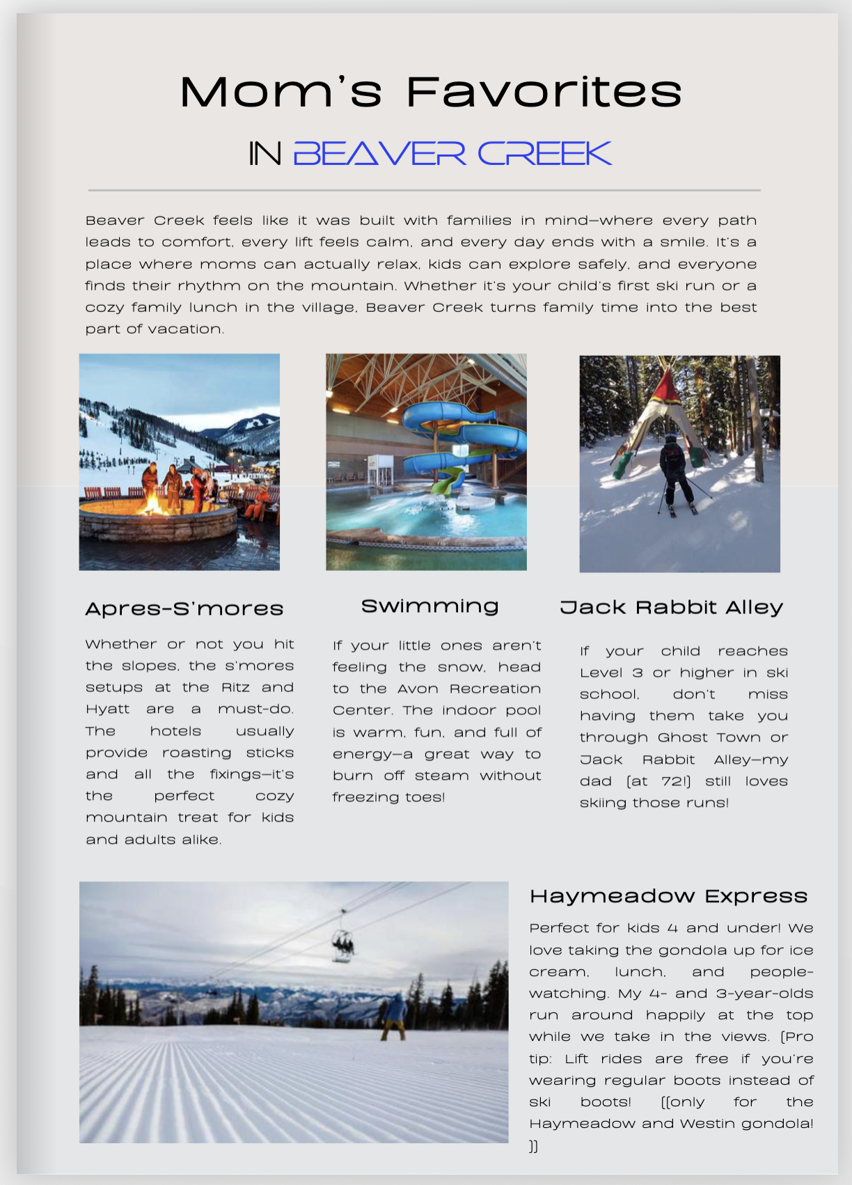 That’s why we created the family travel magazine — a digital magazine designed to keep you informed about all the hot spots. From best kid-free restaurants and breakfast places to daily entertainment and our favorite family-friendly ski spots.